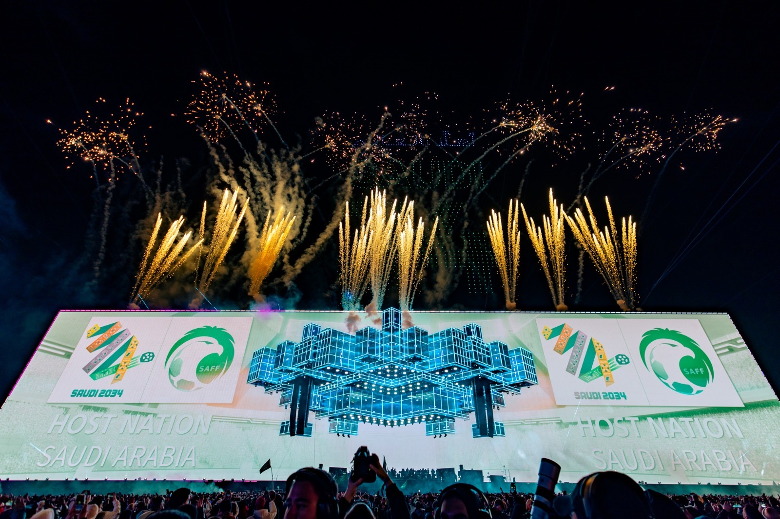 وزاد حماس جمهور اليوم الأول من مهرجان ساوندستورم 2024 الاحتفال بفوز المملكة بتنظيم واستضافة كأس العالم لكرة القدم 2034، والذي تم الإعلان عنه قبل يوم واحد فقط من انطلاق المهرجان، وأضاء عرض مذهل للألعاب النارية سماء منطقة بنبان، فيما صعد أساطير كرة القدم نيمار وأوتافيو وأنجيلو الذين يلعبون الآن في صفوف دوري روشن السعودي، إلى جانب أسطورة الرياضة السعودية ياسر القحطاني، على المسرح للاحتفال بهذا الإنجاز الرياضي الذي لا يُنسى في تاريخ المملكة.